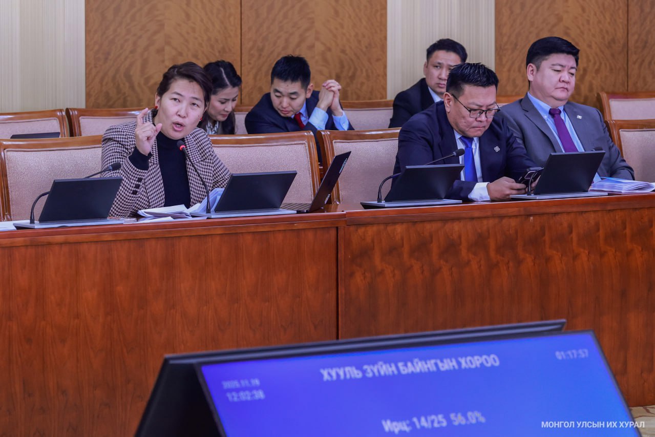 Улсын Их Хурлын Хууль зүйн байнгын хорооны өнөөдрийн (2025.11.19) хуралдаан 10 цаг 44 минутад гишүүдийн 52 хувийн ирцтэйгээр эхэлж, хоёр асуудал хэлэлцэн шийдвэрлэлээ.