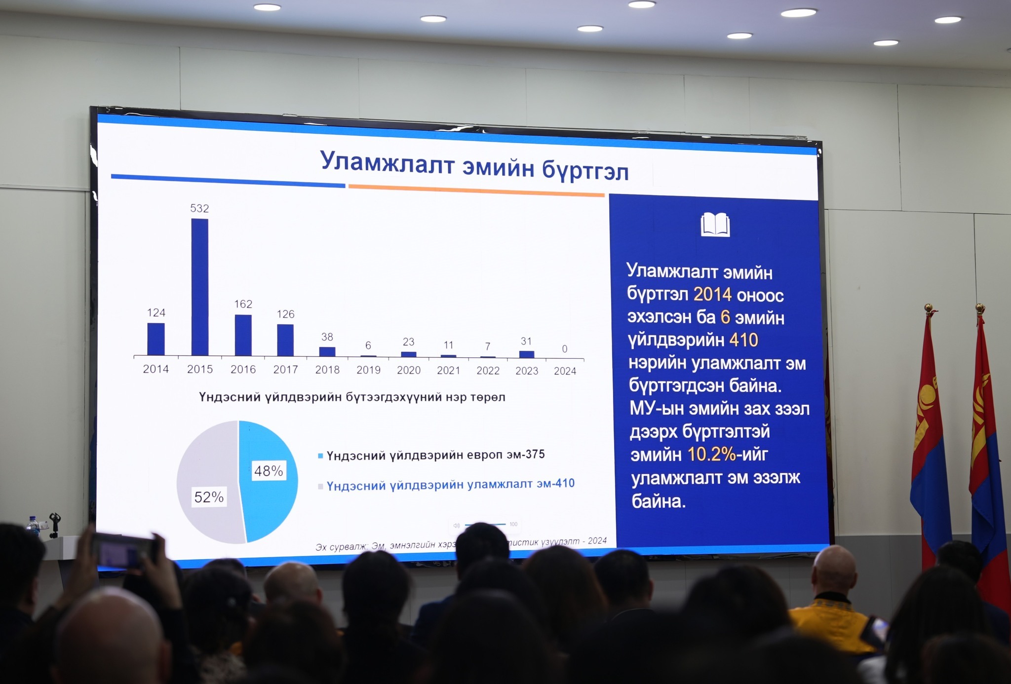 Мөн эмийн үнийн ил тод байдлыг нэмэгдүүлэх зорилгоор em.hdc.gov.mn системийг e-barimt аппликейшнд холбон хөгжүүлж, 2,200 гаруй эмийн үнийн мэдээллийг олон нийтэд нээлттэй болгосон. Цаашид эмийн бүртгэл, импорт, хяналт, түгээлтийн мэдээллийг нэгдсэн цахим системд нэгтгэх ажлыг хэрэгжүүлнэ.
