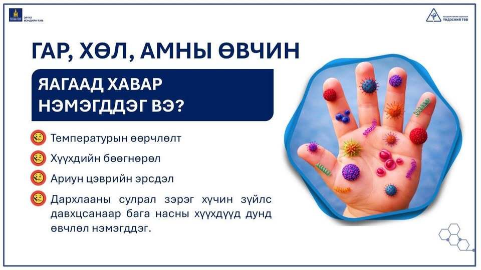 Урин дулааны цагт бага насны хүүхдүүдийн дунд гар, хөл, амны өвчний эрсдэл нэмэгддэг. Энэ өвчин нь халуурах, ам болон гар, хөл дээр цэврүүт тууралт гарах зэрэг шинжээр илэрдэг халдварт өвчин бөгөөд хүүхдүүдийн дунд амархан тархдаг