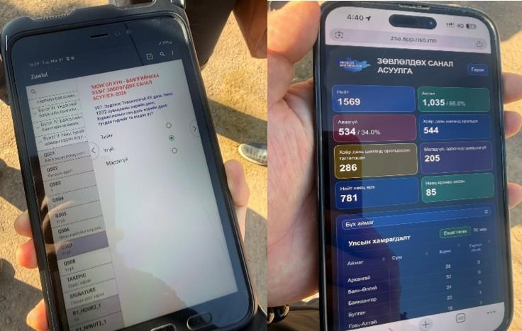 Санал асуулгын эхний шатанд 1570 иргэдийн санал асуулгыг таблет төхөөрөмжөөр авч байна.