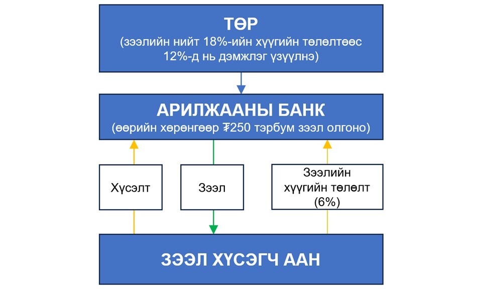 Энэхүү хөтөлбөрийн дагуу Соёл, спорт, аялал жуулчлал, залуучуудын яамны 2026 оны төсөвт зээлийн хүүд дэмжлэг үзүүлэх 13 тэрбум төгрөг тусгагдсан бөгөөд хүүгийн дэмжлэгийн хэмжээнд үндэслэн энэ онд 250 тэрбум төгрөгийн зээл олгогдох тооцоолол хийгдсэн. Энэхүү хөнгөлөлттэй зээлийн хүрээнд Худалдаа хөгжлийн банк, Хаан банк, Хас банк, Төрийн банк, Голомт банк, Капитрон банк, Богд банк, Тээвэр хөгжлийн банк, Ариг банк, М банк гэх 10 банк өөрсдийн дотоод шалгуур, эрсдэлийн үнэлгээ, шийдвэр гаргалтын дагуу олгох бөгөөд хамгийн боломжит, шаардлага хангасан аж ахуйн нэгжүүдийг бие даан сонгон санхүүжүүлнэ.