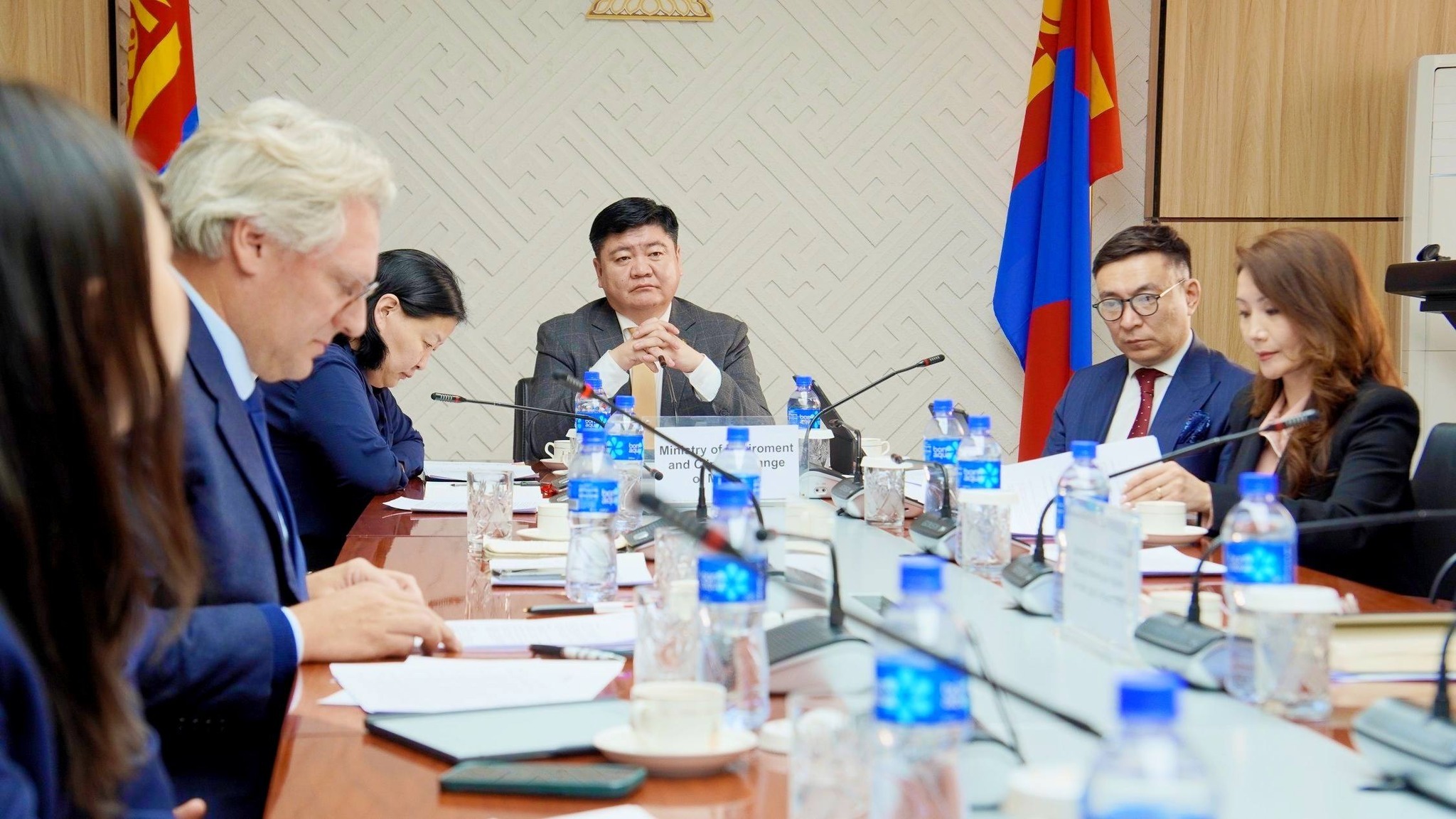 Байгаль орчин, уур амьсгалын өөрчлөлтийн сайд Ц.Сандаг-Очир, Цөлжилттэй тэмцэх тухай НҮБ-ын конвенцын Гүйцэтгэх нарийн бичгийн дарга Ясмин Фуад болон COP17-ын “Цэнхэр бүс”-ийн түр байгууламжийг барьж, тохижуулахаар шалгарсан GL Events компанийн төлөөлөлтэй гурван талт уулзалт (2026.04.15) боллоо.