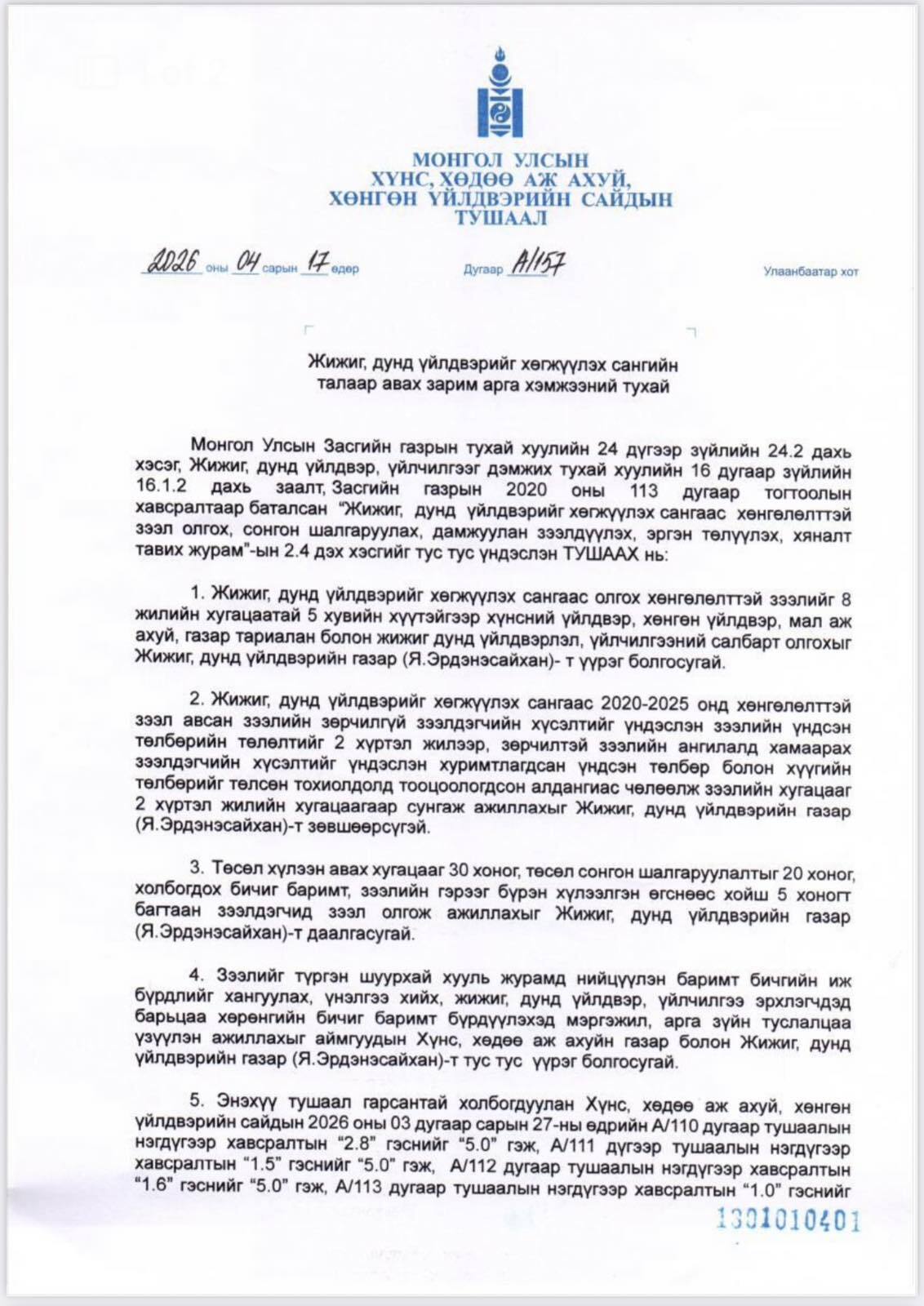 ЖДҮХС-ГИЙН ХӨНГӨЛӨЛТТЭЙ ЗЭЭЛИЙГ 8 ЖИЛЭЭР ОЛГОХООР БОЛЖ, ТӨСӨЛ ХҮЛЭЭН АВАХ ХУГАЦААГ 30 ХОНОГ, ТӨСЛИЙГ 20 ХОНОГТ ШАЛГАРУУЛДАГ БОЛЛОО